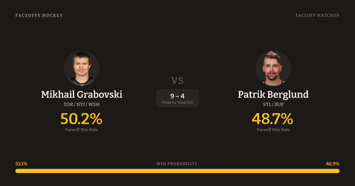 Mikhail Grabovski vs Patrik Berglund — Faceoff Head-to-Head