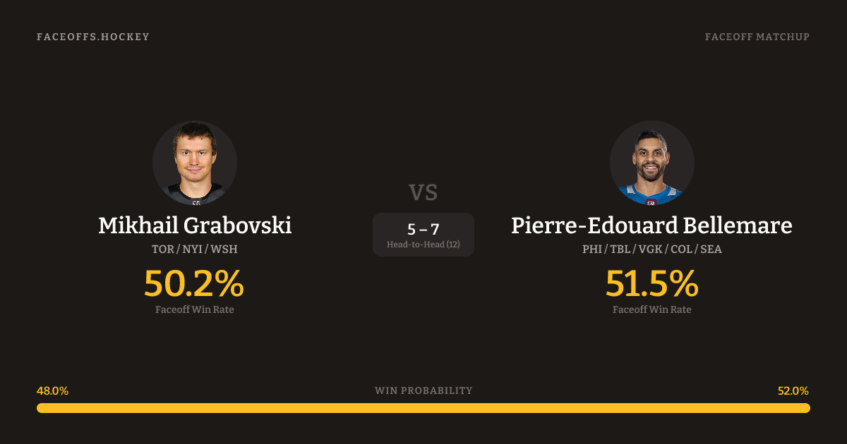 Mikhail Grabovski vs Pierre-Edouard Bellemare — Faceoff Head-to-Head