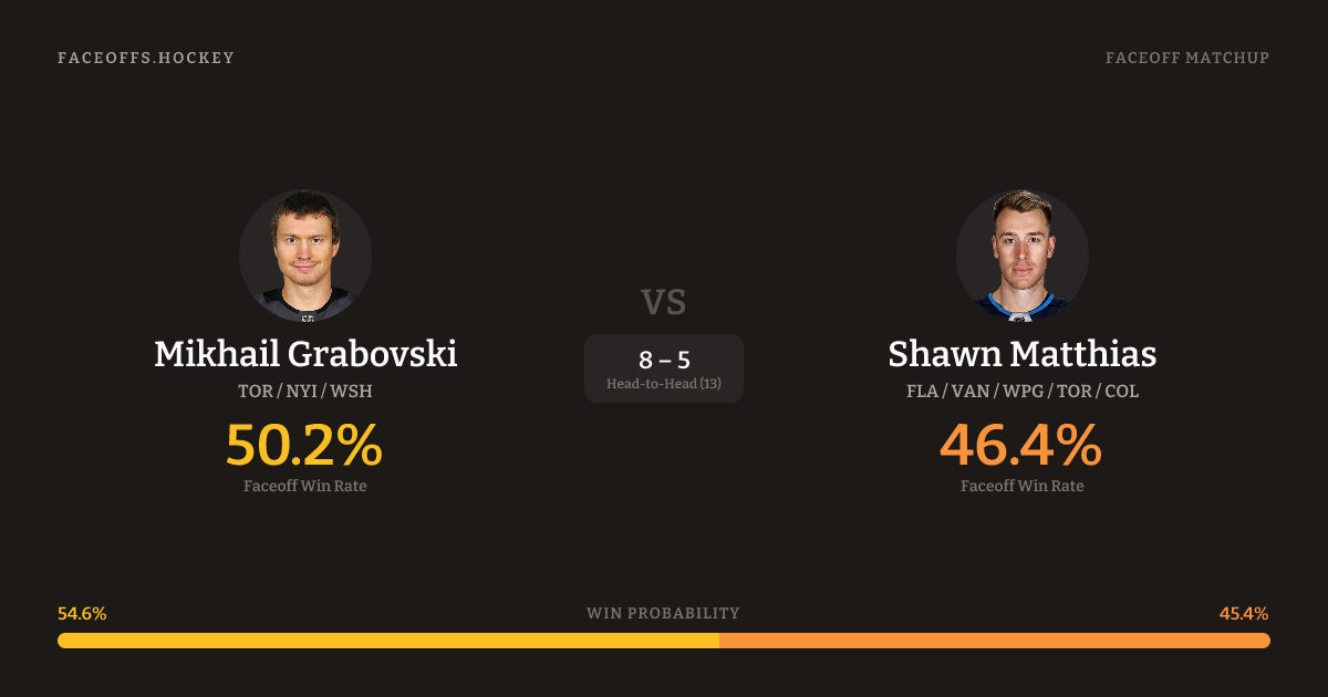 Mikhail Grabovski vs Shawn Matthias — Faceoff Head-to-Head