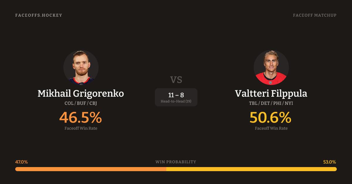 Mikhail Grigorenko vs Valtteri Filppula — Faceoff Head-to-Head