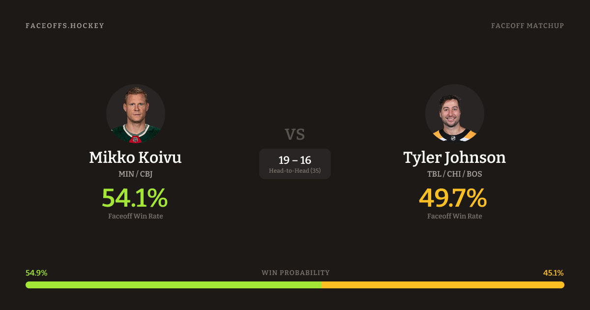 Mikko Koivu vs Tyler Johnson — Faceoff Head-to-Head