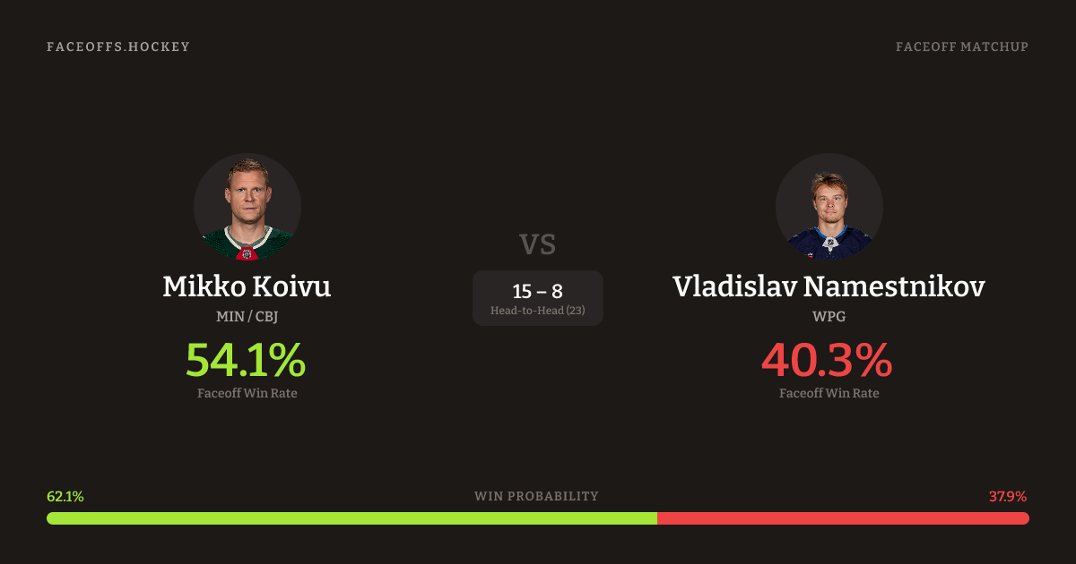 Mikko Koivu vs Vladislav Namestnikov — Faceoff Head-to-Head