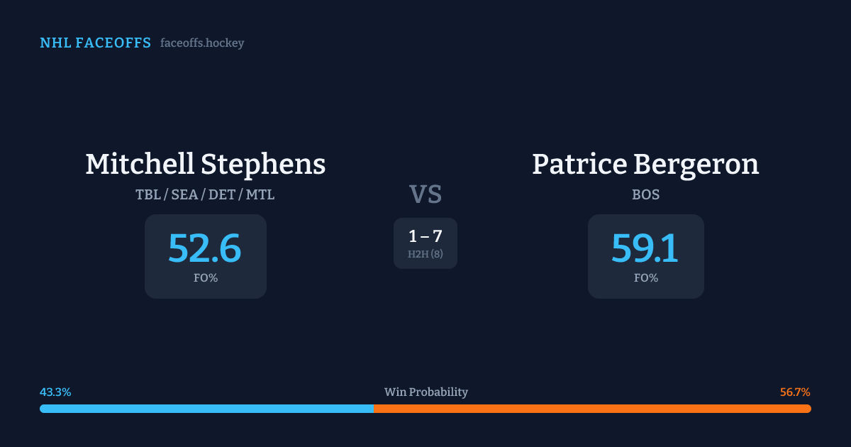 Mitchell Stephens vs Patrice Bergeron — Faceoff Head-to-Head