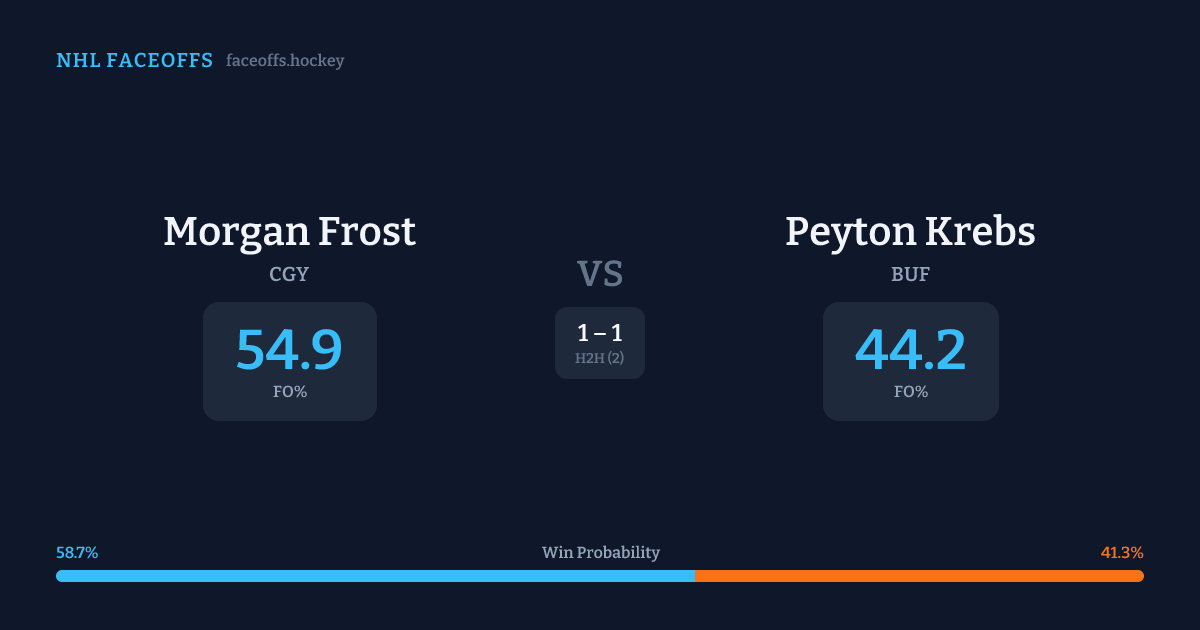 Morgan Frost holds a +13.1% FO% edge overall. Look for Frost on neutral-zone draws (100% H2H, 3 meetings).