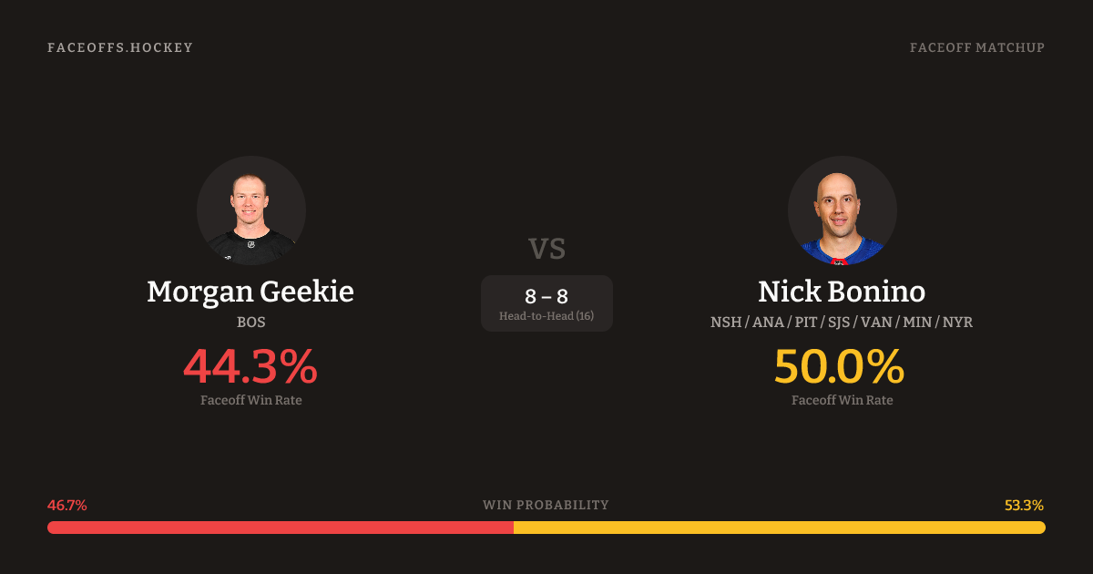 Morgan Geekie vs Nick Bonino — Faceoff Head-to-Head