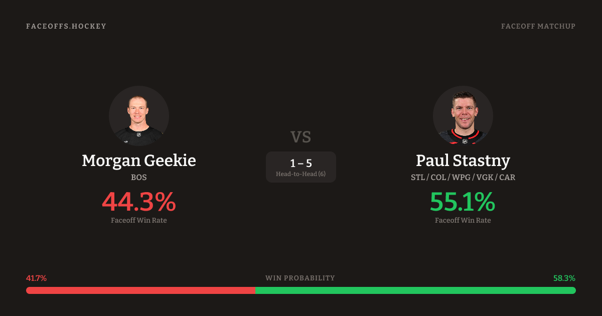 Morgan Geekie vs Paul Stastny — Faceoff Head-to-Head