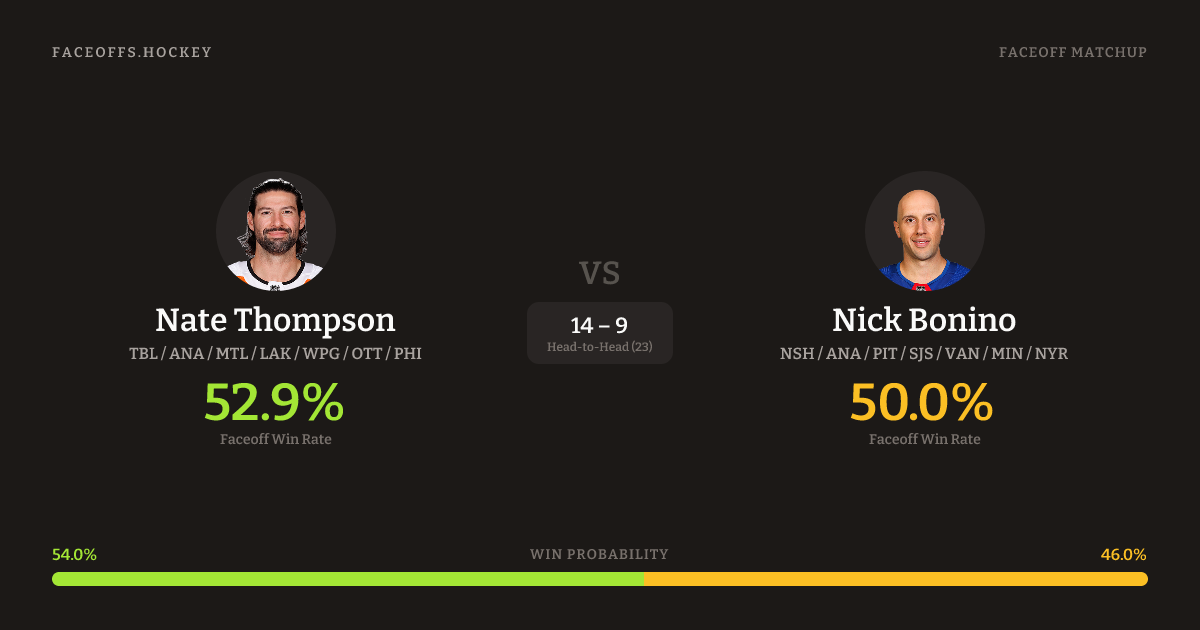 Nate Thompson vs Nick Bonino — Faceoff Head-to-Head