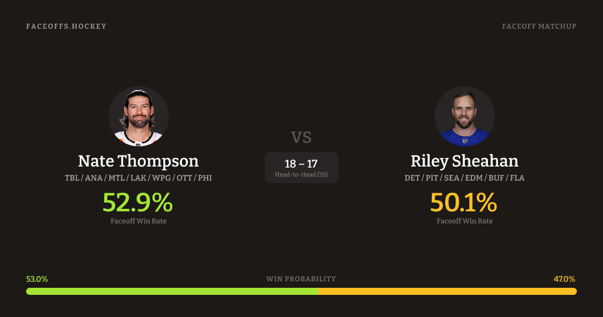 Nate Thompson vs Riley Sheahan — Faceoff Head-to-Head