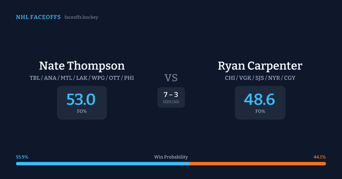 Nate Thompson vs Ryan Carpenter — Faceoff Head-to-Head