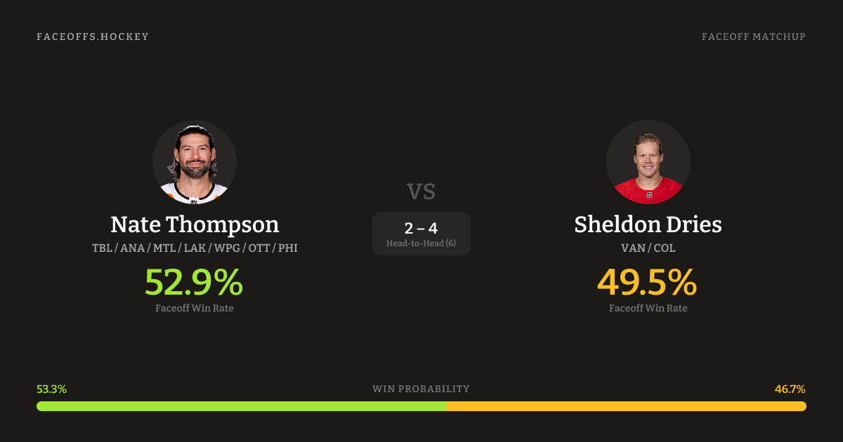 Nate Thompson vs Sheldon Dries — Faceoff Head-to-Head