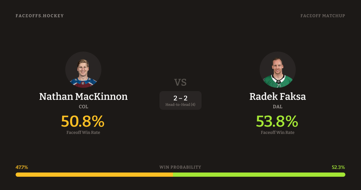 Nathan MacKinnon vs Radek Faksa — Faceoff Head-to-Head