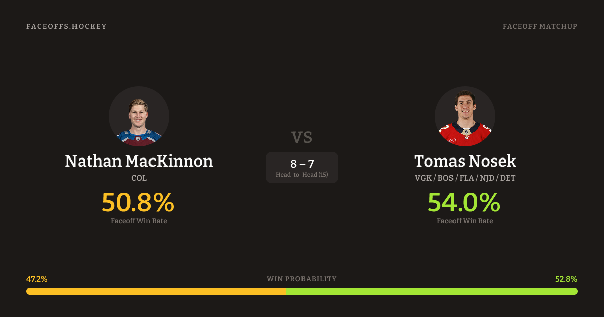 Nathan MacKinnon vs Tomas Nosek — Faceoff Head-to-Head