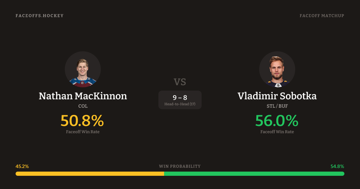 Nathan MacKinnon vs Vladimir Sobotka — Faceoff Head-to-Head