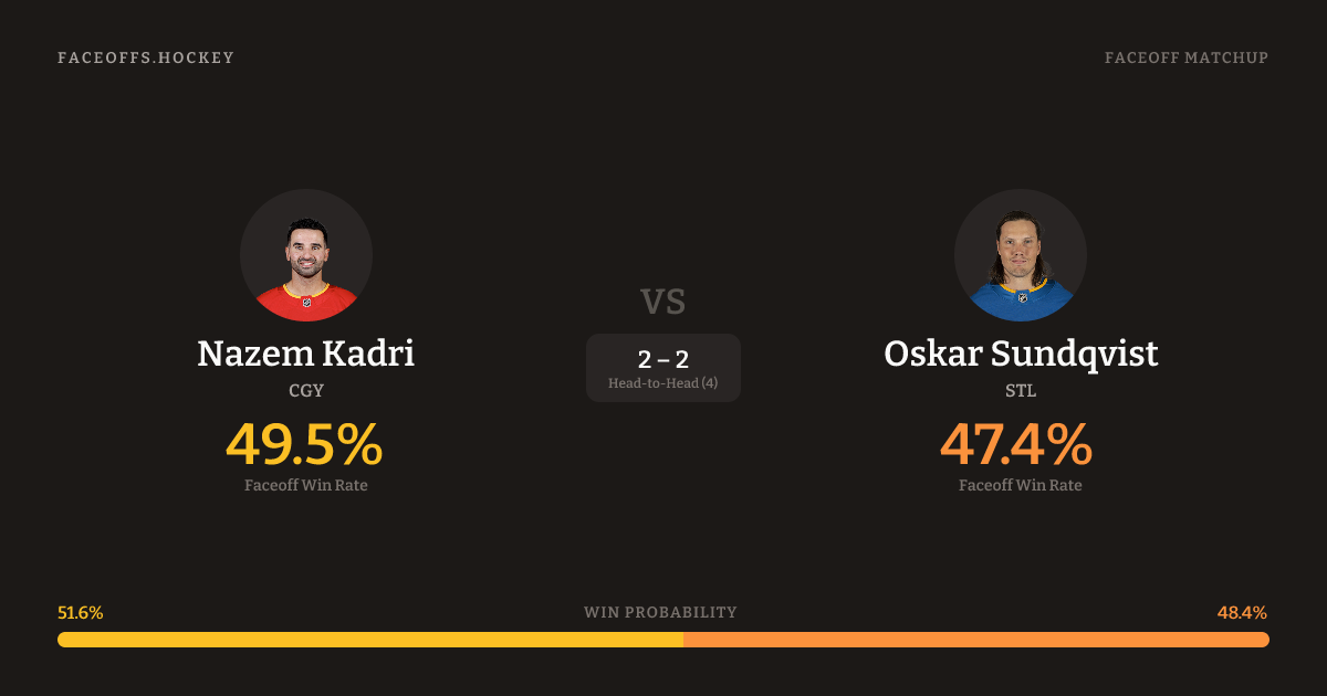 Nazem Kadri vs Oskar Sundqvist — Faceoff Head-to-Head