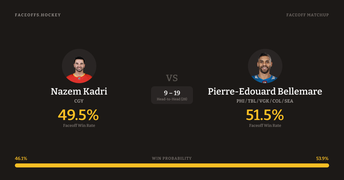 Nazem Kadri vs Pierre-Edouard Bellemare — Faceoff Head-to-Head