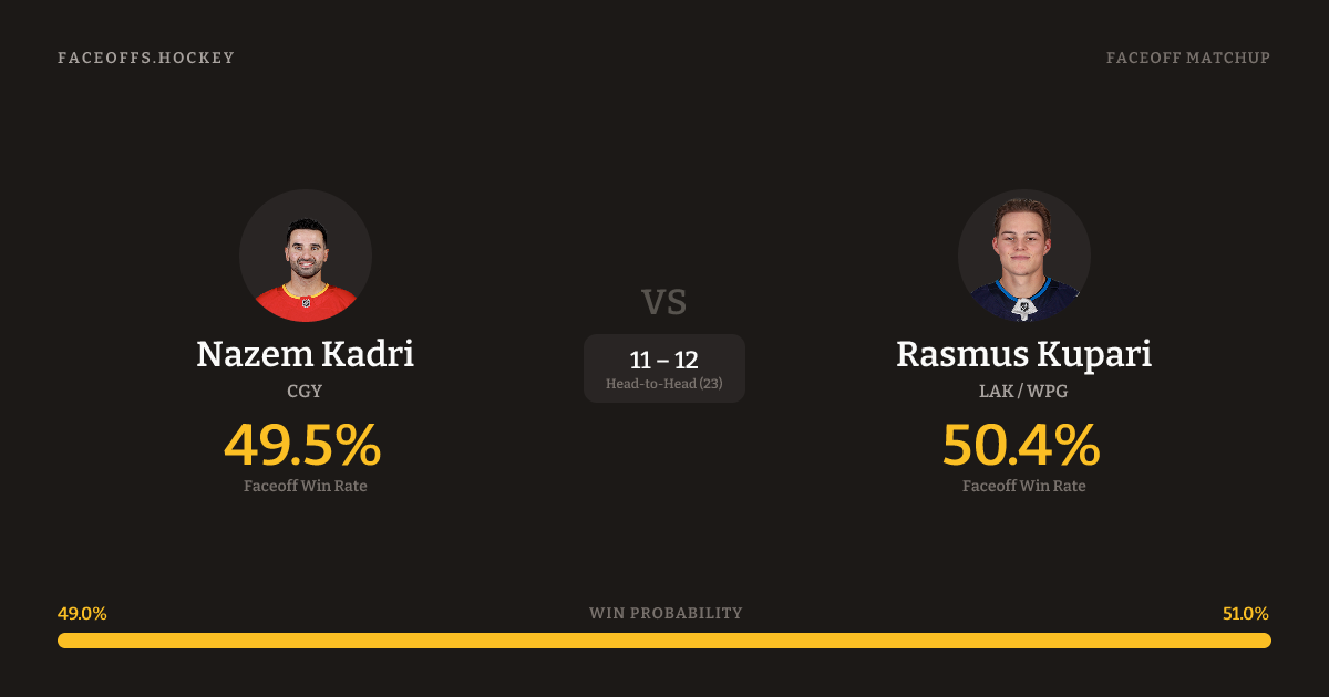 Nazem Kadri vs Rasmus Kupari — Faceoff Head-to-Head