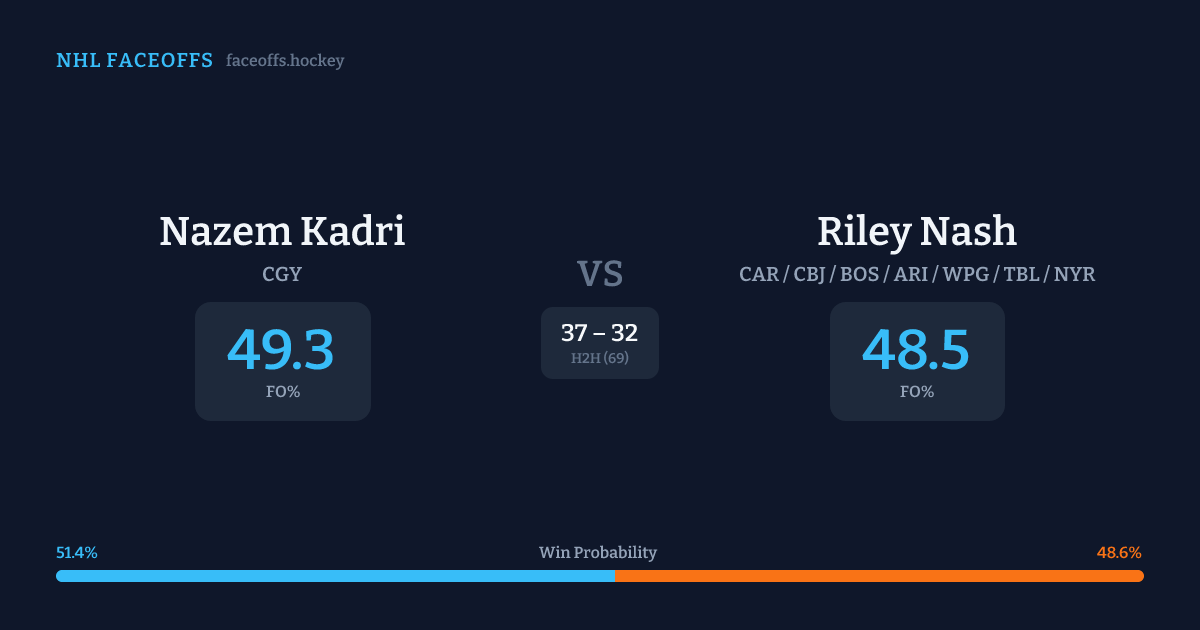 Nazem Kadri vs Riley Nash — Faceoff Head-to-Head