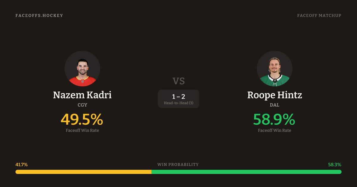 Nazem Kadri vs Roope Hintz — Faceoff Head-to-Head