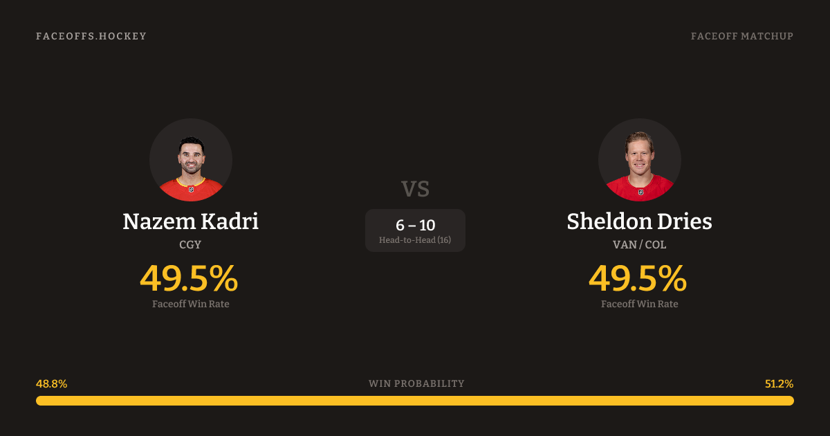 Nazem Kadri vs Sheldon Dries — Faceoff Head-to-Head