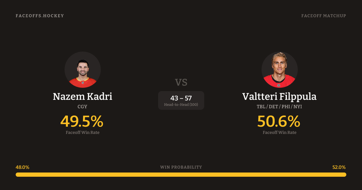 Nazem Kadri vs Valtteri Filppula — Faceoff Head-to-Head
