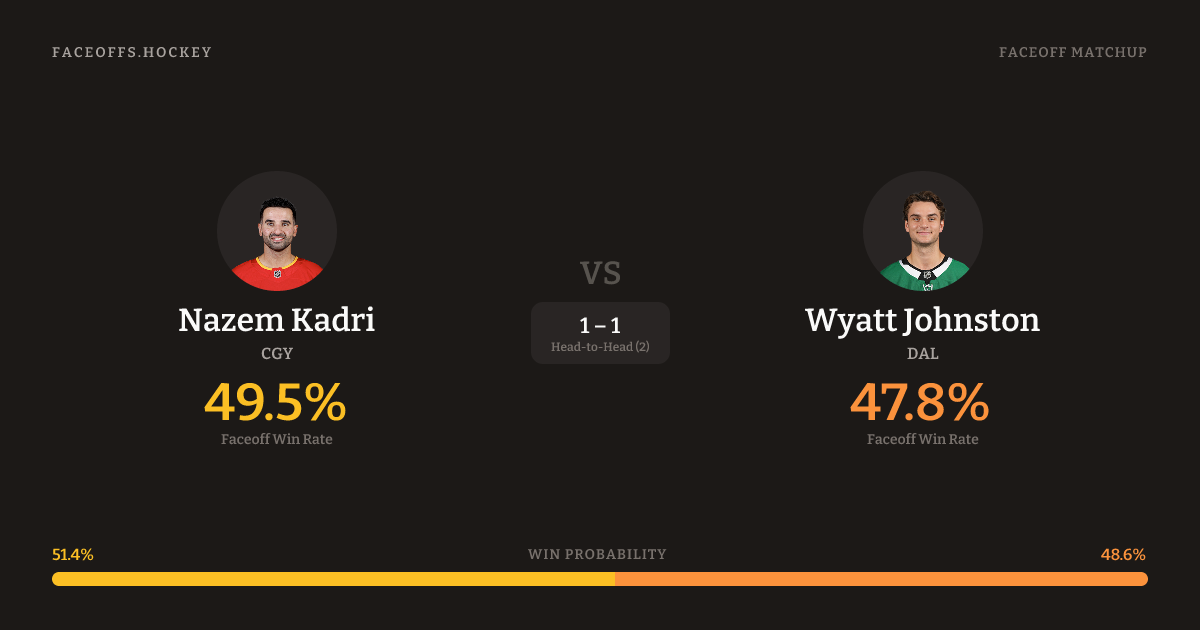 Nazem Kadri vs Wyatt Johnston — Faceoff Head-to-Head