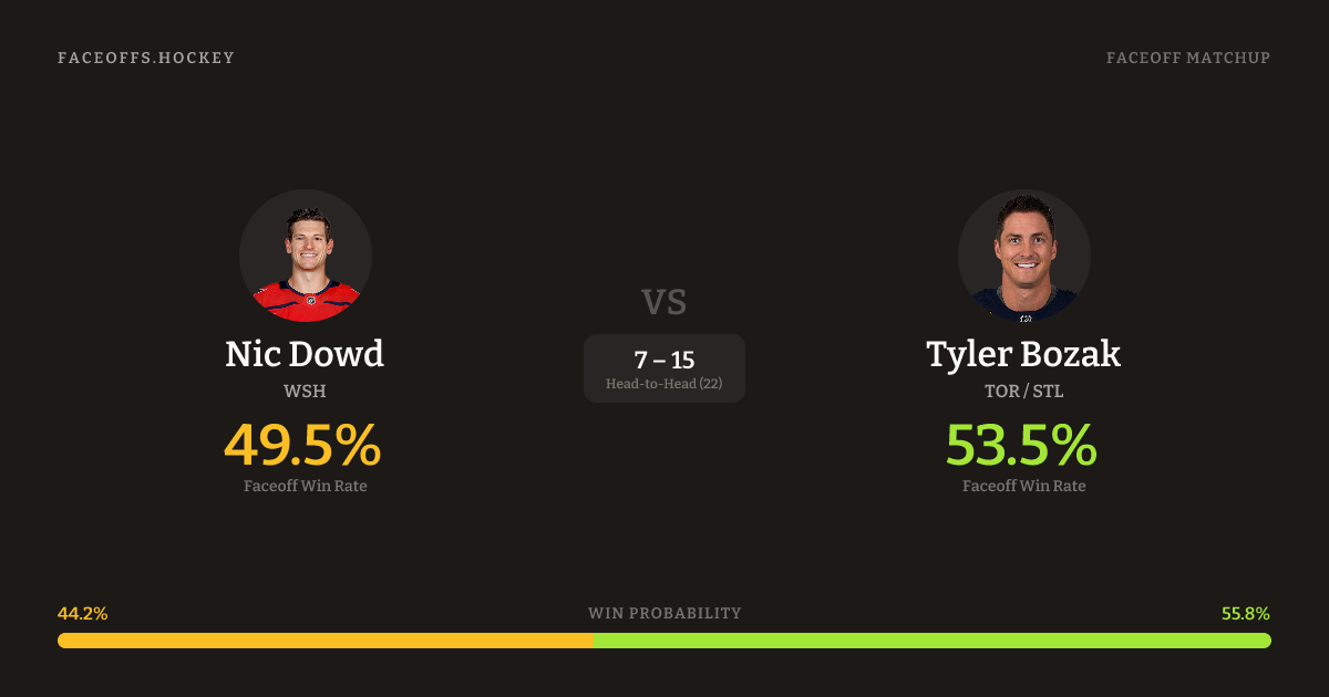 Nic Dowd vs Tyler Bozak — Faceoff Head-to-Head