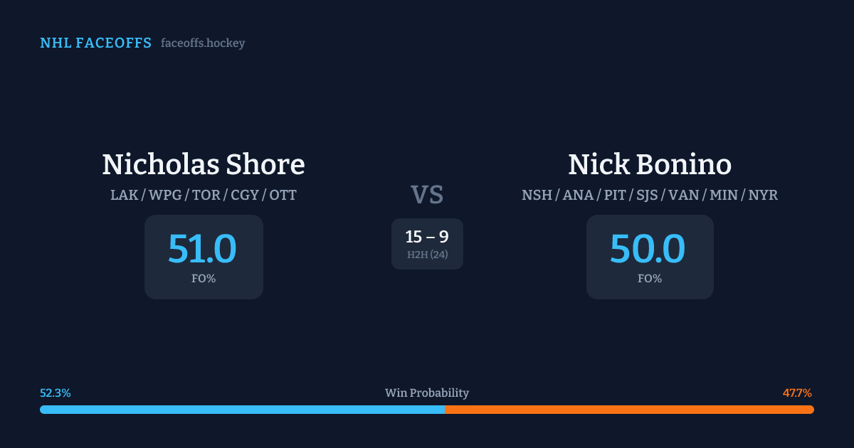 Nicholas Shore vs Nick Bonino — Faceoff Head-to-Head