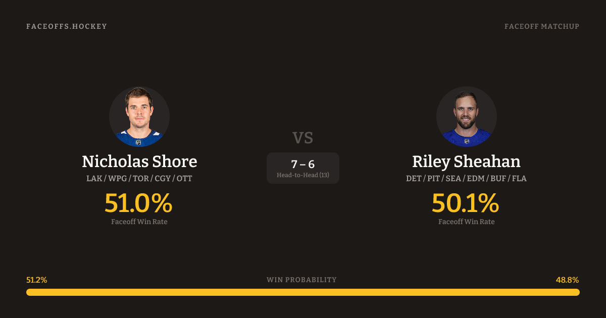 Nicholas Shore vs Riley Sheahan — Faceoff Head-to-Head