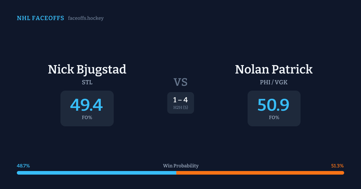 Nick Bjugstad vs Nolan Patrick — Faceoff Head-to-Head