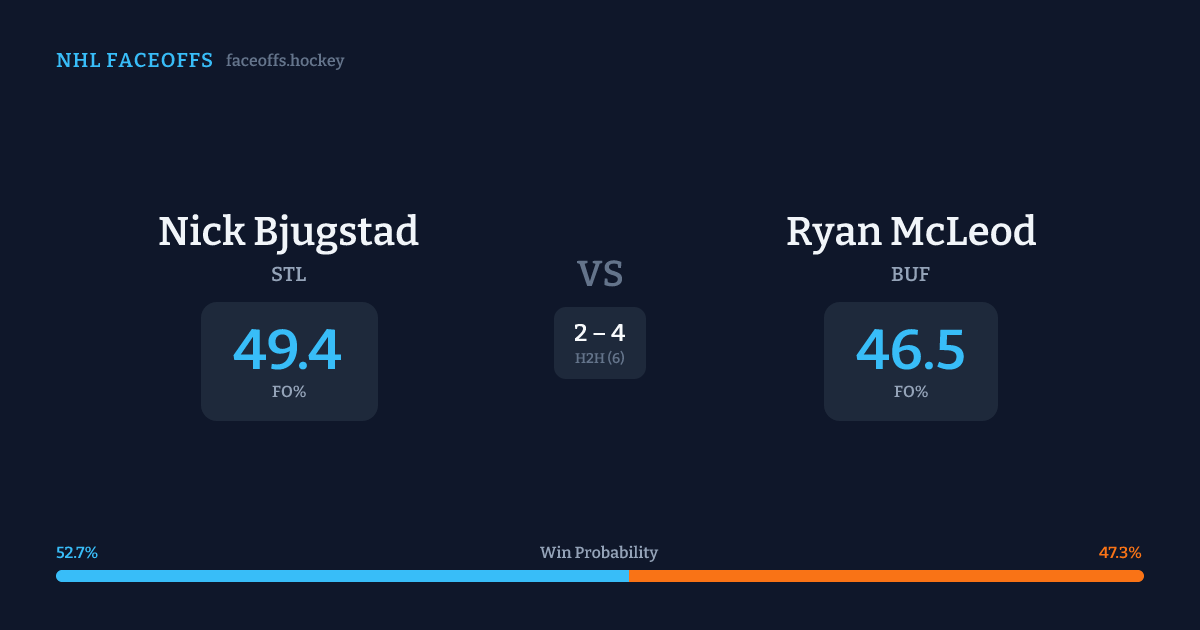 Nick Bjugstad vs Ryan McLeod — Faceoff Head-to-Head