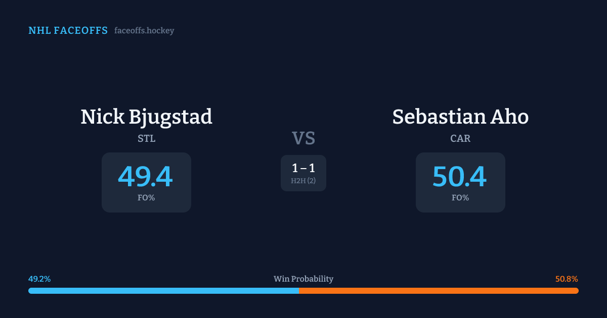 Nick Bjugstad vs Sebastian Aho — Faceoff Head-to-Head