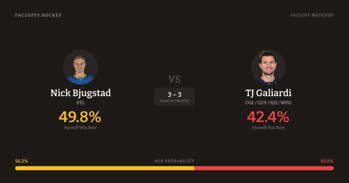 Nick Bjugstad vs TJ Galiardi — Faceoff Head-to-Head