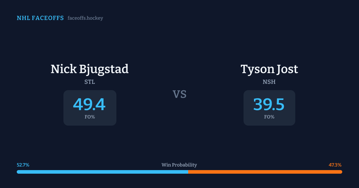 Nick Bjugstad vs Tyson Jost — Faceoff Head-to-Head