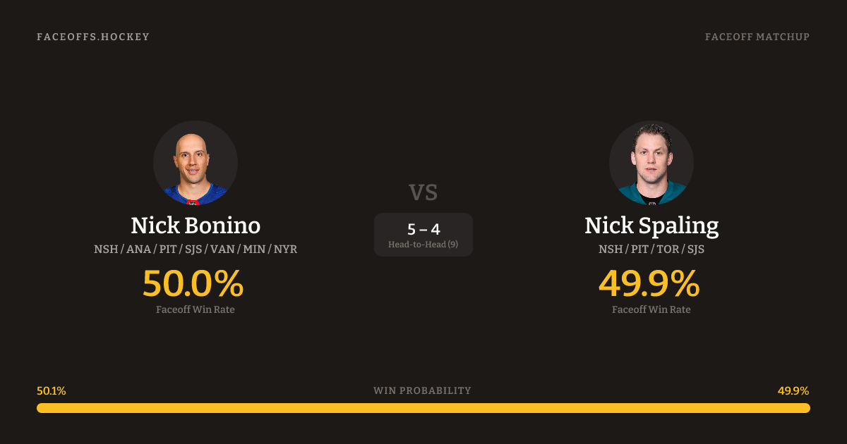 Nick Bonino vs Nick Spaling — Faceoff Head-to-Head