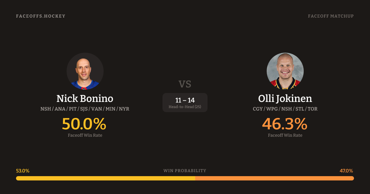 Nick Bonino vs Olli Jokinen — Faceoff Head-to-Head