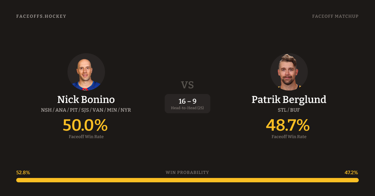 Nick Bonino vs Patrik Berglund — Faceoff Head-to-Head