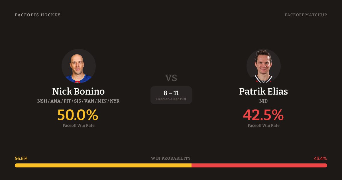 Nick Bonino vs Patrik Elias — Faceoff Head-to-Head