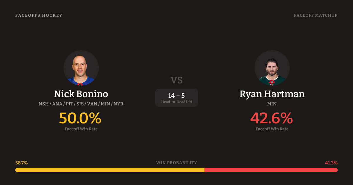 Nick Bonino vs Ryan Hartman — Faceoff Head-to-Head