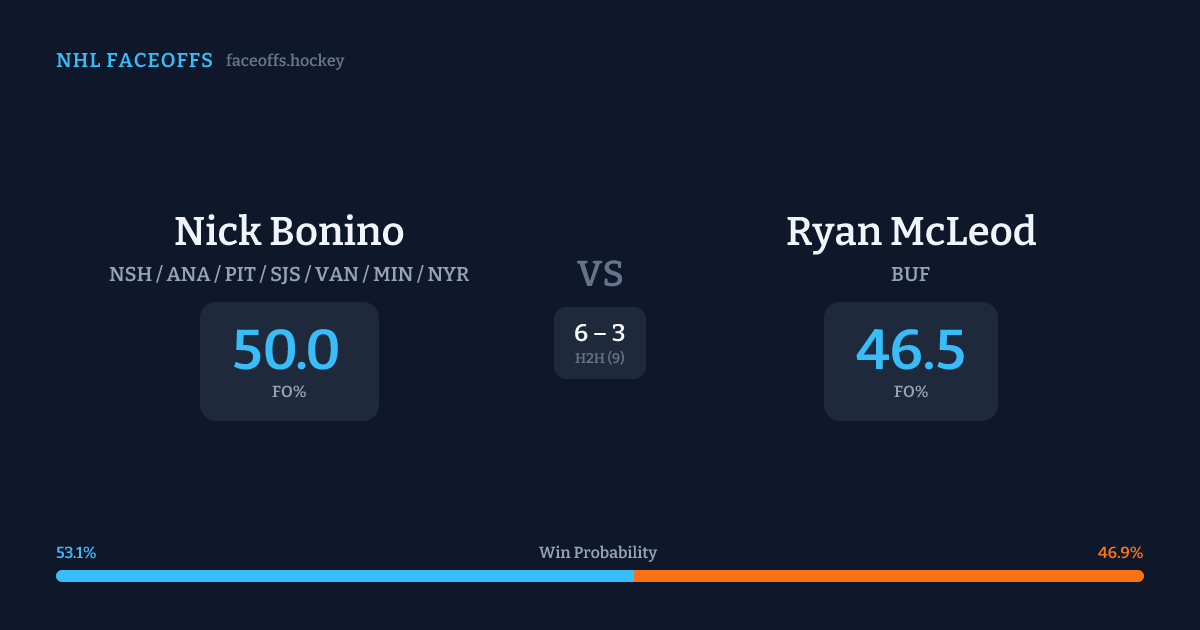 Nick Bonino vs Ryan McLeod — Faceoff Head-to-Head