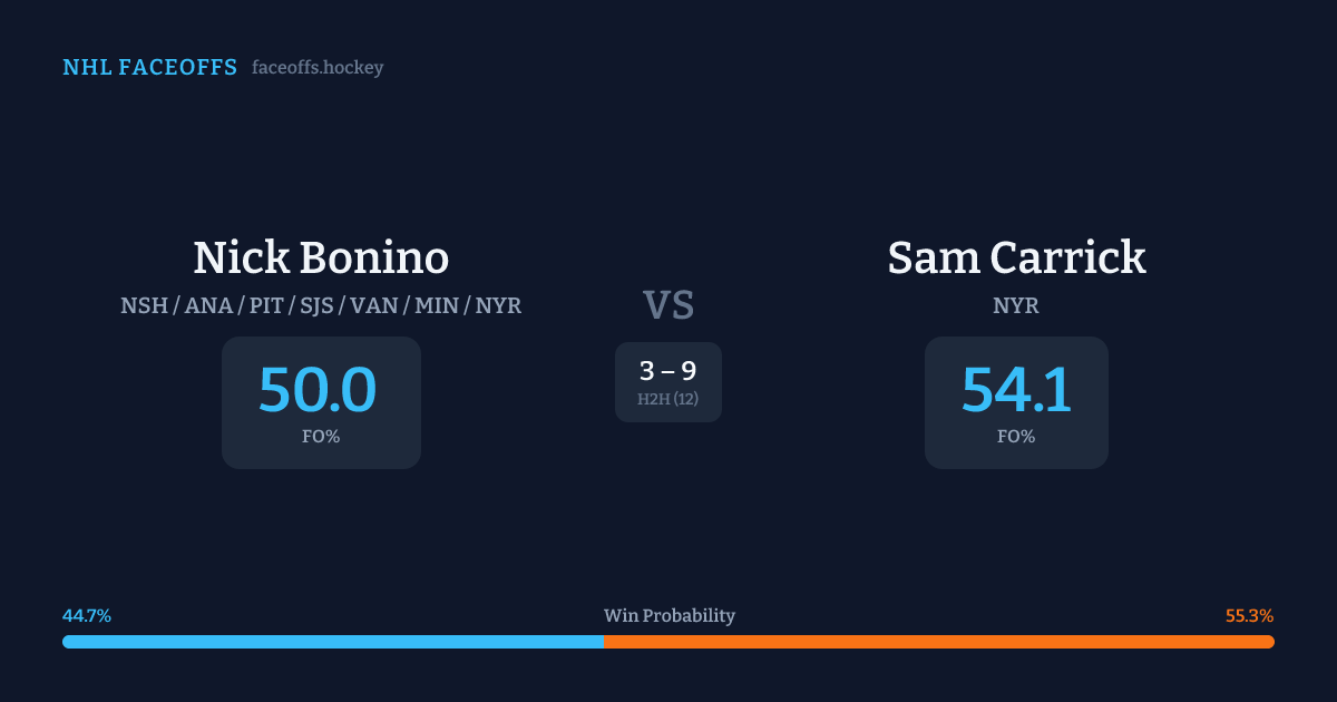 Nick Bonino vs Sam Carrick — Faceoff Head-to-Head