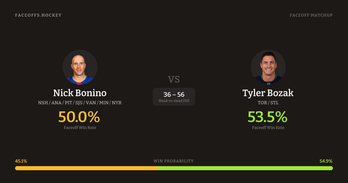 Nick Bonino vs Tyler Bozak — Faceoff Head-to-Head