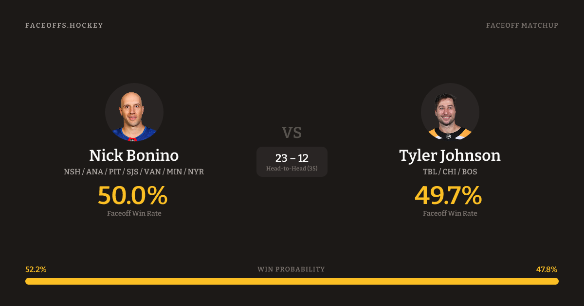 Nick Bonino vs Tyler Johnson — Faceoff Head-to-Head