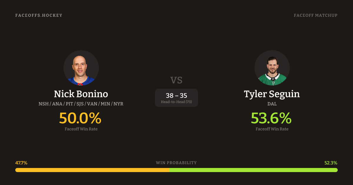 Nick Bonino vs Tyler Seguin — Faceoff Head-to-Head