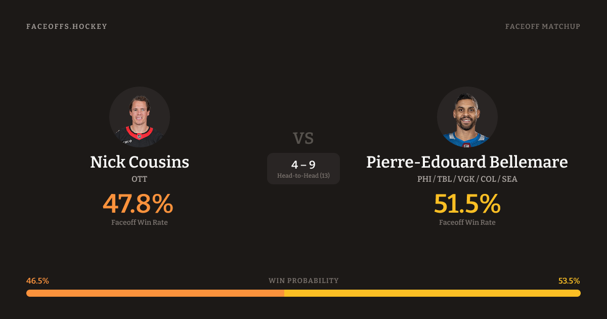 Nick Cousins vs Pierre-Edouard Bellemare — Faceoff Head-to-Head