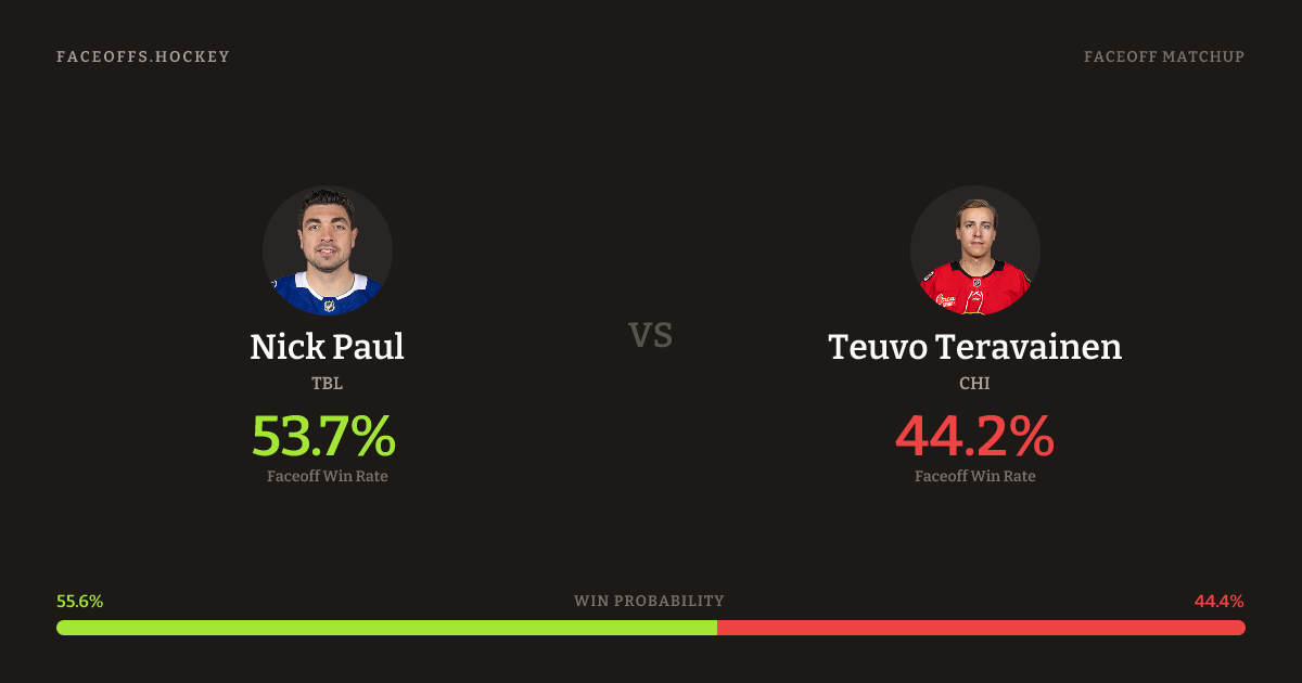 Nick Paul vs Teuvo Teravainen — Faceoff Head-to-Head