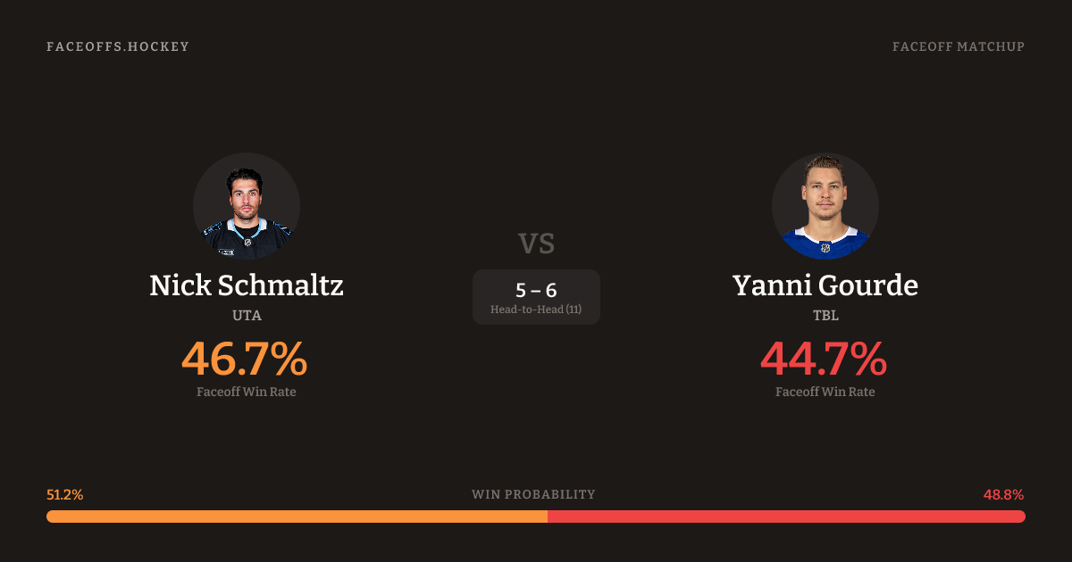 Nick Schmaltz vs Yanni Gourde — Faceoff Head-to-Head