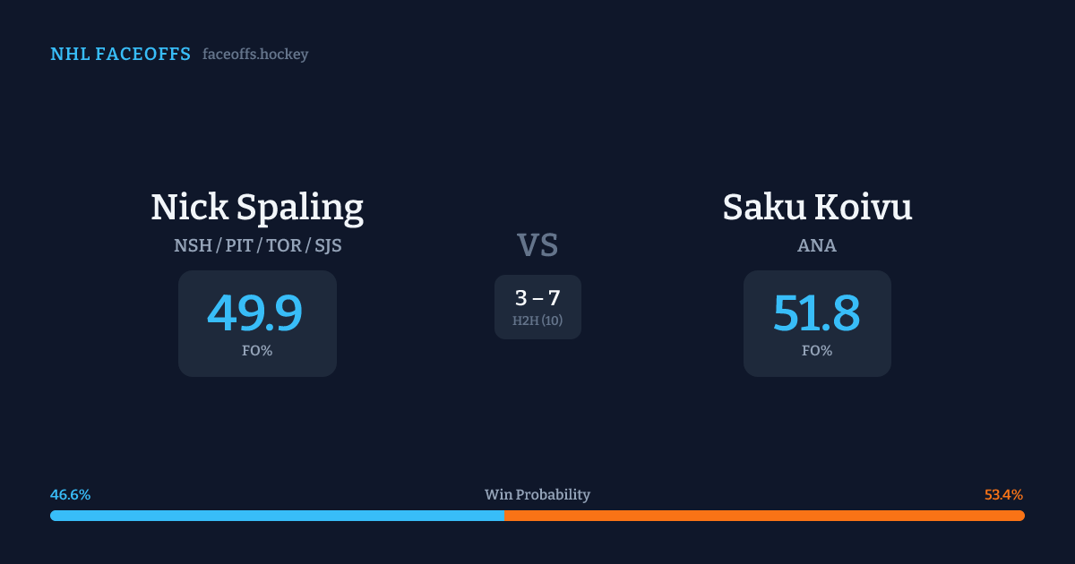 Nick Spaling vs Saku Koivu — Faceoff Head-to-Head