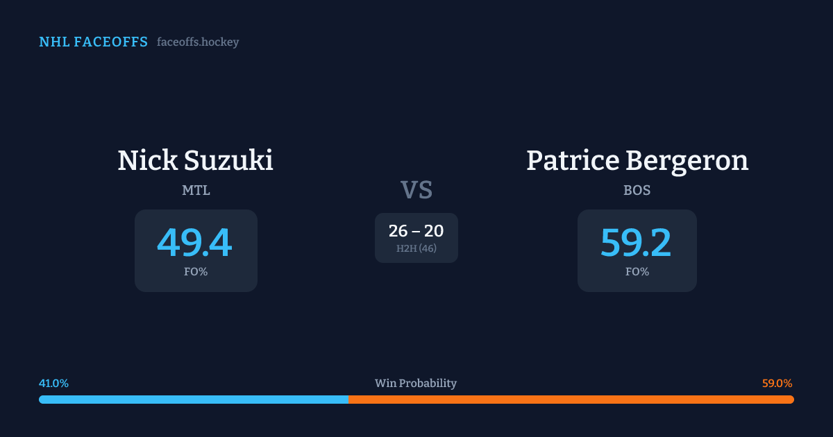 Nick Suzuki vs Patrice Bergeron — Faceoff Head-to-Head