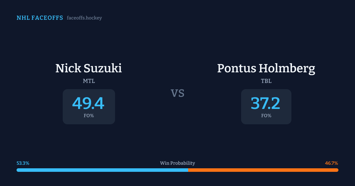 Nick Suzuki vs Pontus Holmberg — Faceoff Head-to-Head