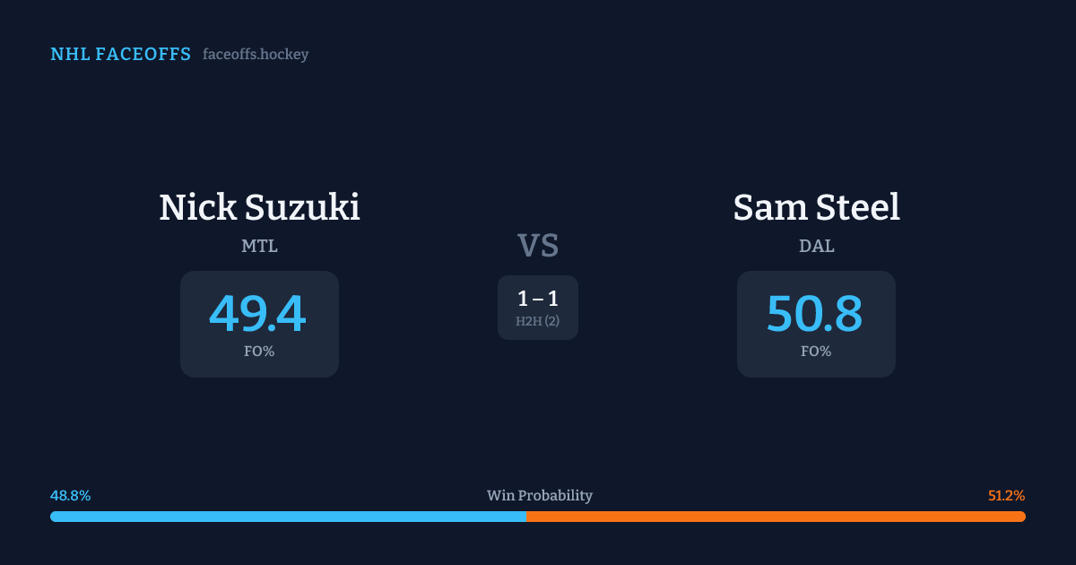 Nick Suzuki vs Sam Steel — Faceoff Head-to-Head